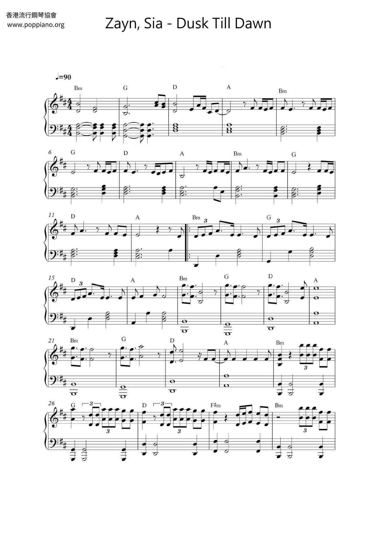 Dusk Till Dawn Sheet Music Zayn Feat Sia Sheetmusic Free Com